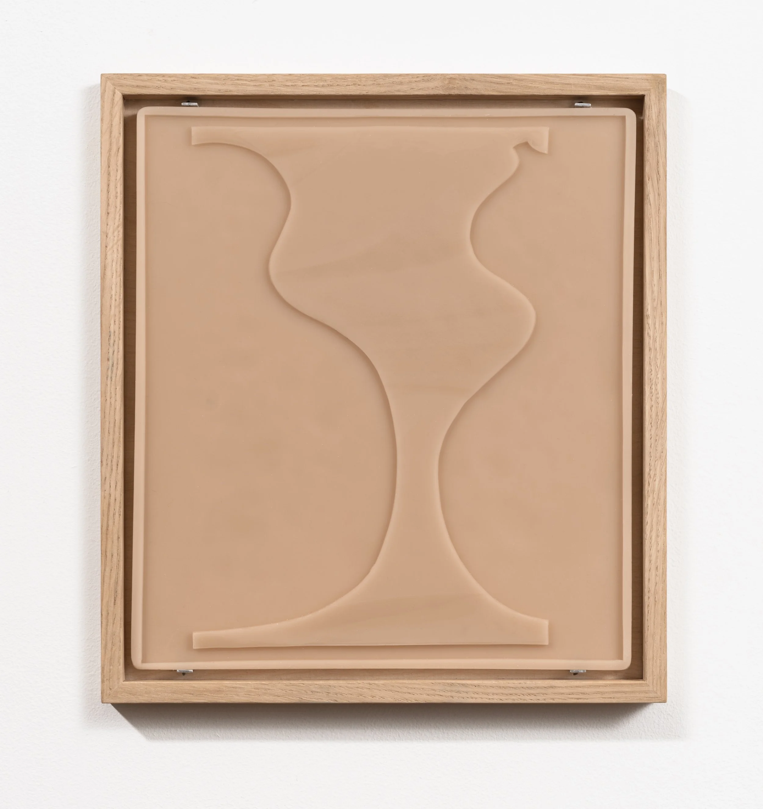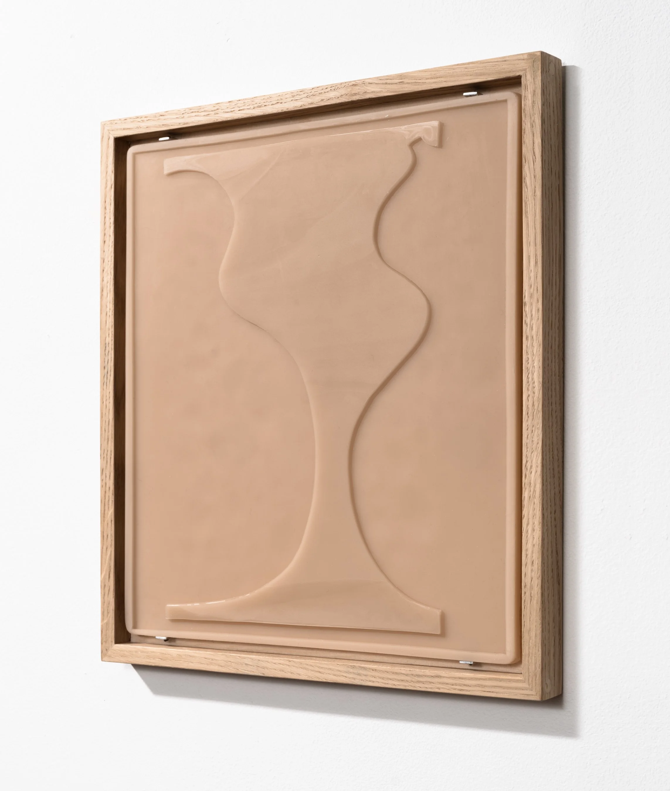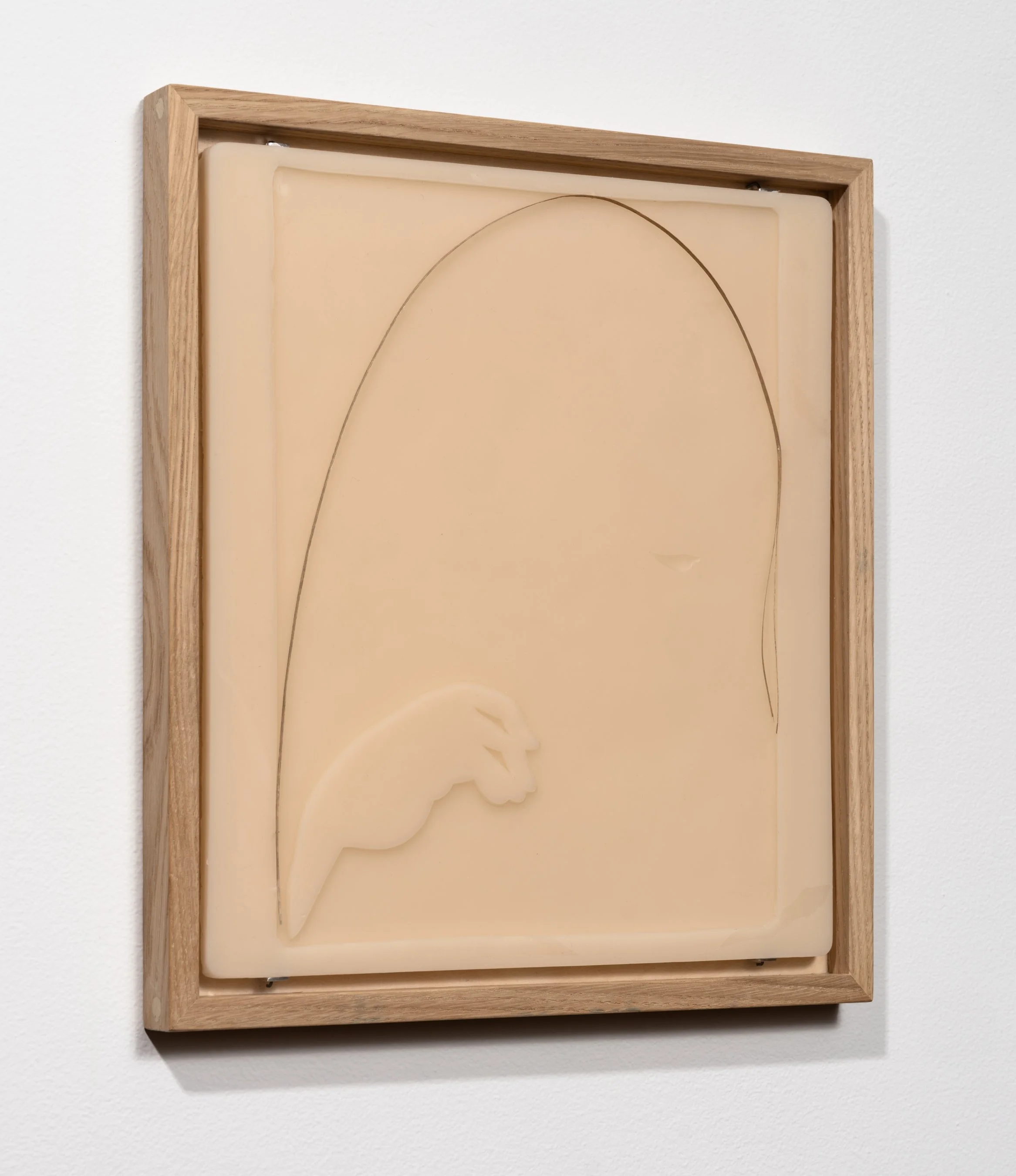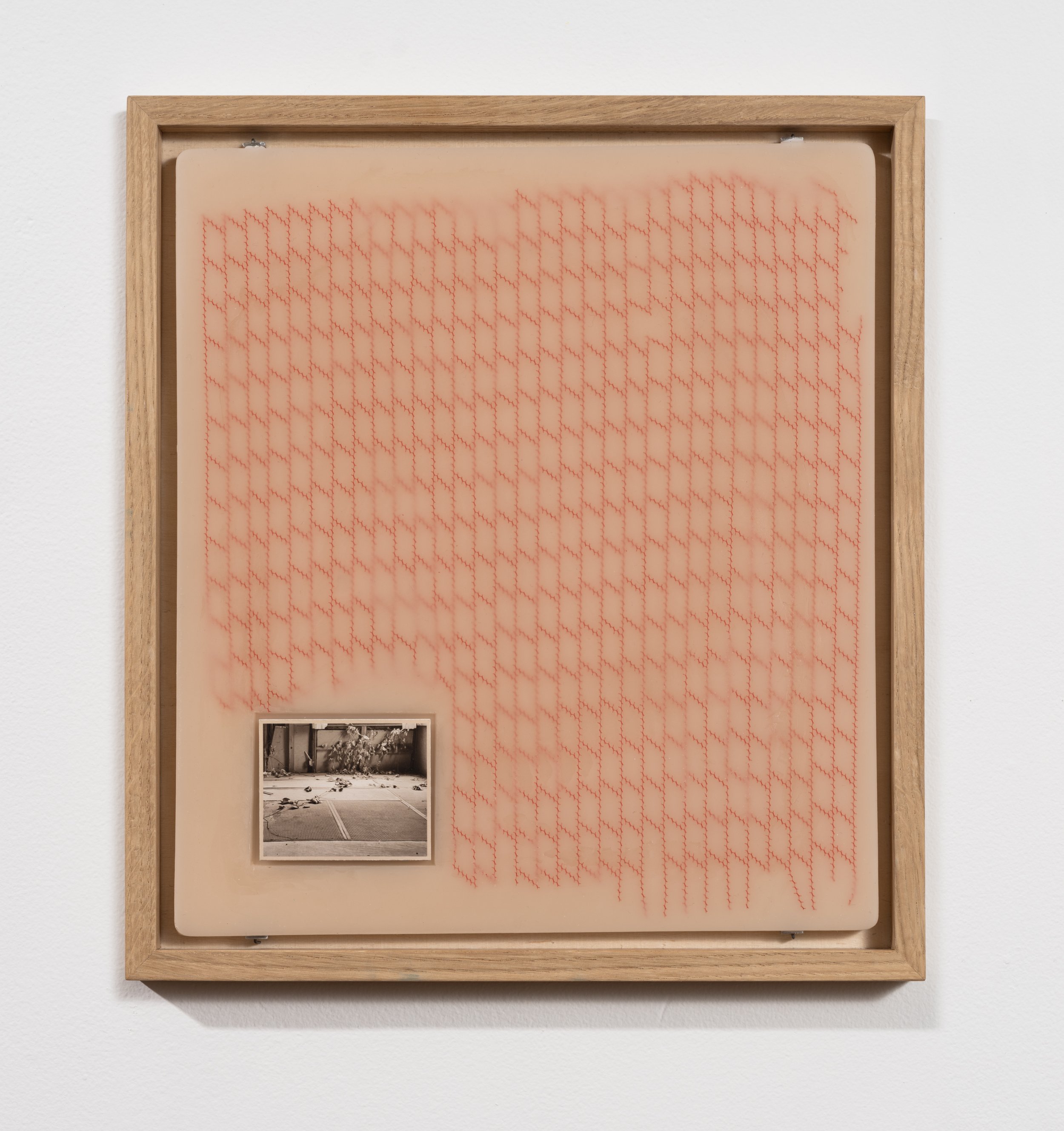 Elina Vainio, Earthquake (Yamamura Koka), 2025. Beeswax, tulle netting, fine art print mounted on aluminum, oak frame, 10 1/4 x 11 3/8 x 3/4 inches / 26 x 29 x 2 cm.