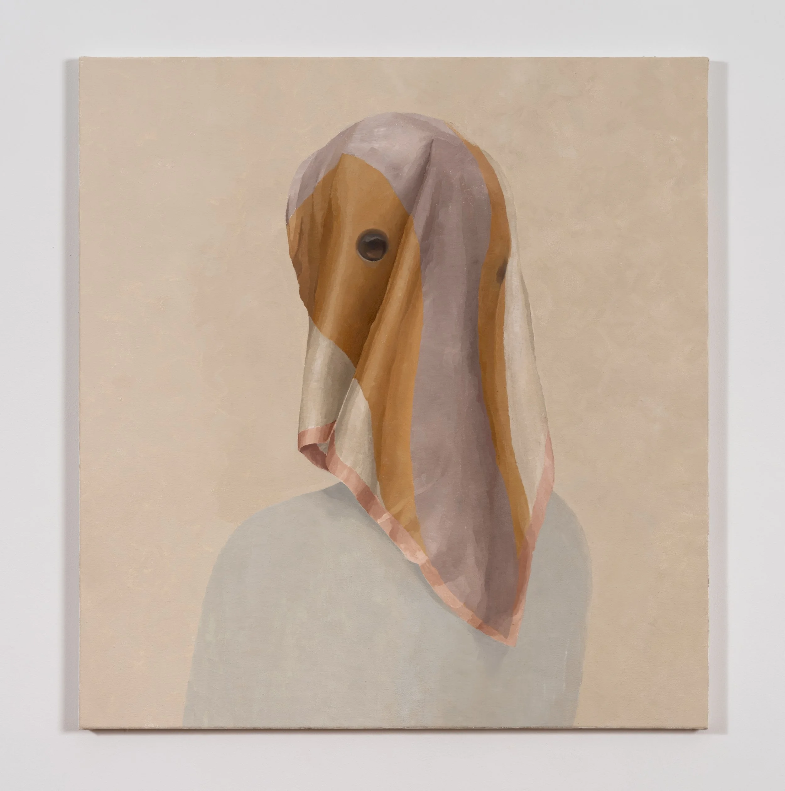 In contrast with this intensely bound connection, Päivi Takala’s paintings adopt a quieter, more contemplative approach to human-animal connections. She depicts female figures wearing scarves with eyes that look out at us, disguising the creatures hidden beneath, and blurring the boundary between humans and the non-humans. Takala’s work reflects on the strange coexistence of these beings and the characteristics and emotions humans often project onto animals. Takala’s recurring motifs, such as depictions of horses and birds, meditate on the nature of that intimacy between species, but also on the unbridgeable expanse that separates them.